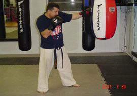 In 1988 datorita serviciului (eram navigator) la Galati l-am cunoscut pe cel care mi-a fost mentor si instructor Danilescu Maricel, el avea centura neagra in judo, maro in skotokan si centura 5 kyu ( galbena) in kyokushin. Antrenamentele se tineau pe ascuns la sala de judo din Galati si in particular ma antrena in boxa de la bloc.