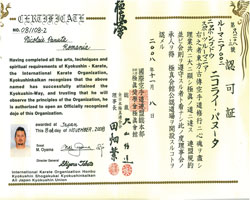 In noiembrie 2012 am promovat la gradu de 3 Dan in Toyama si la gradul de 4 Dan in anul 2017 in Okinawa, toate examenele sustinute in comisii de centuri negre de 7-8 maestrii Japonezi. sunt arbitru categoria H international, examen promovat in Okimawa, cel mai mare grad de arbitraj din Romania pe IKOKU.